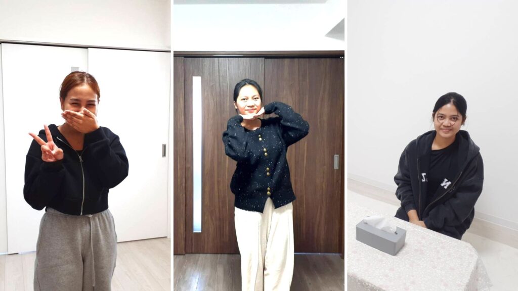 面談後に、宿泊施設監査訪問でカリスタさん、ファニさん、リアさんのお部屋に行きました。皆さんとても綺麗なお部屋なので、いつもこんなに綺麗にしているの?と尋ねると、昨日から掃除していました!と笑顔で答えていました。