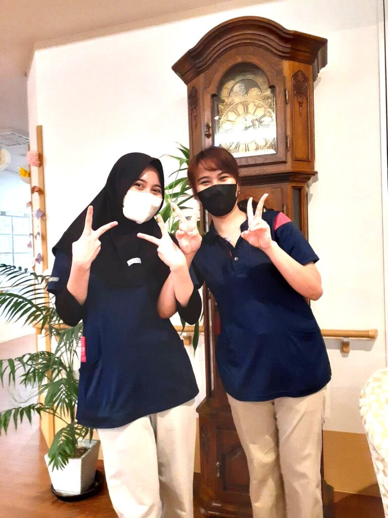 現在2名の外国人実習生の方に来ていただいています。もう1年以上になります。いつもニコニコしていて、性格も明るいし、よく働いてくれています。入居者様からも受けがいいですよ。日本語の方も、日常会話ではほぼ問題ありません。今では大阪弁にも慣れてきたようです。