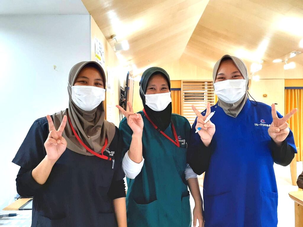 5期生のヨシンタさんとアンニサさんは約1ヶ月の入国後講習を終えて今月20日に配属され、22日から勤務を開始したので、今は入居者様とのコミュニケーションをしているそうです。先輩がとても優しいので助かりますと話していました。