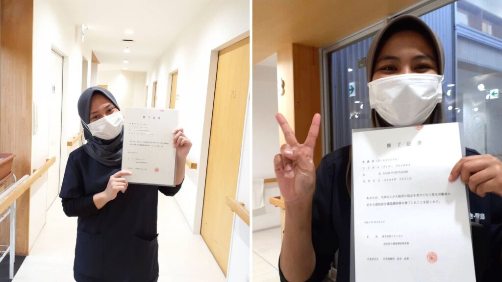 6期生のワンダさんとララサティさん、特定技能のディアーさんに先日受講した認知症e-ラーニングの修了証を渡そうと思ったのですが不在だったので施設に預けたのでまた受け取るように連絡しました。