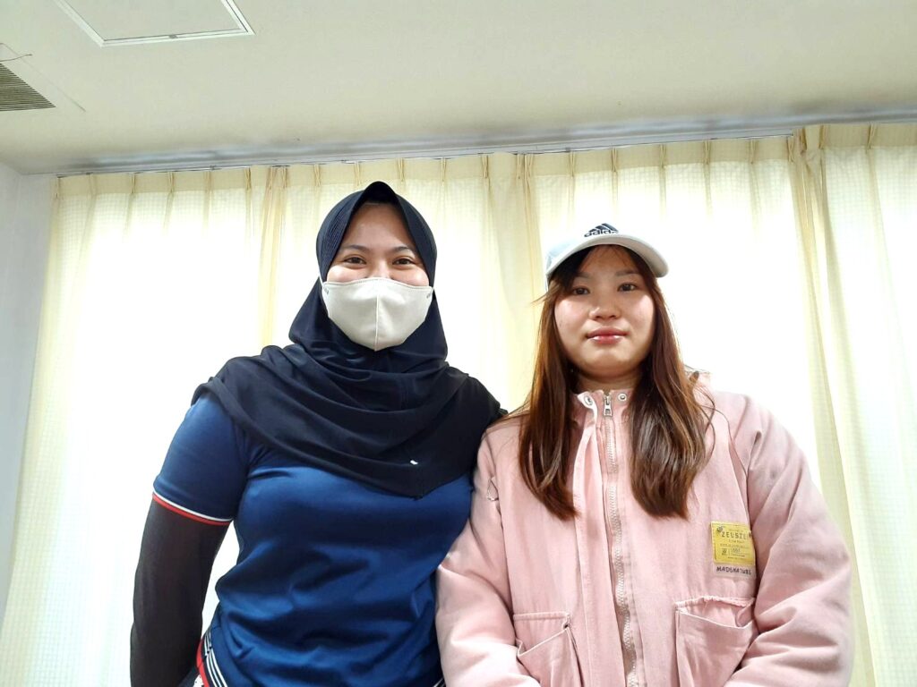 昨年10月に入職した技能実習生6期生のディアーさん、デラさんはすっかり馴染んで楽しく仕事をしていると笑顔で話していました。