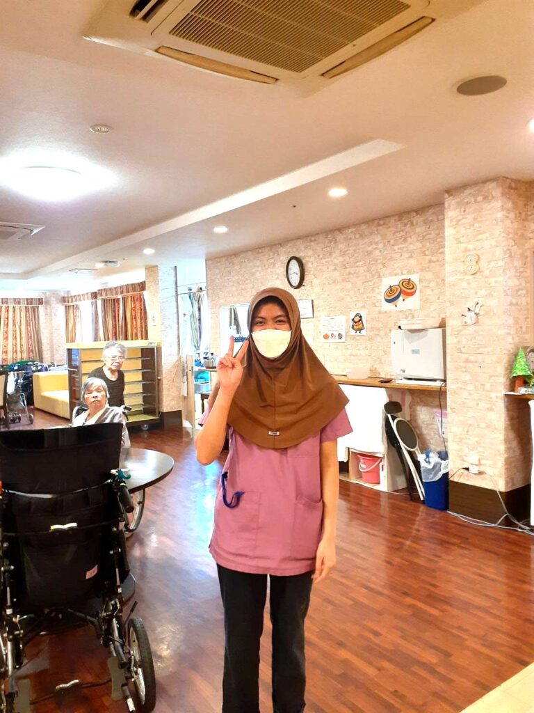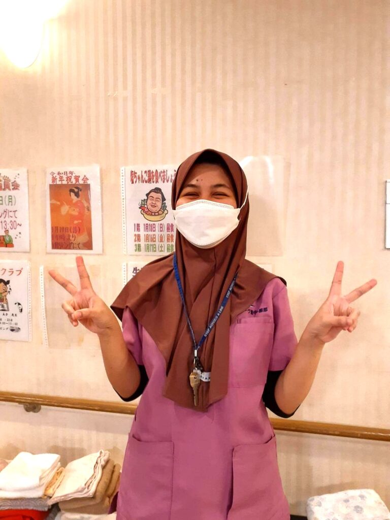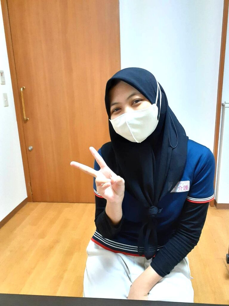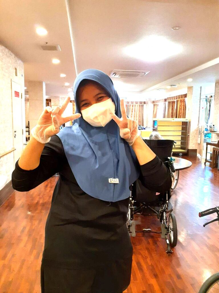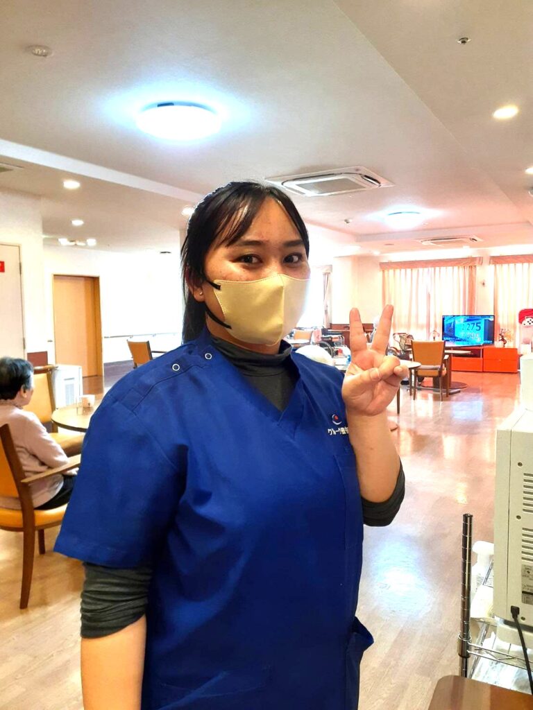 並行して企業様主催の介護福祉士試験対策のZOOM勉強会にも参加するので、仕事と勉強の両立で大変ですが、会社や施設長やスタッフの協力を本当にしみじみと感じていると言うエルサさん。有難いので頑張りますと話していました。