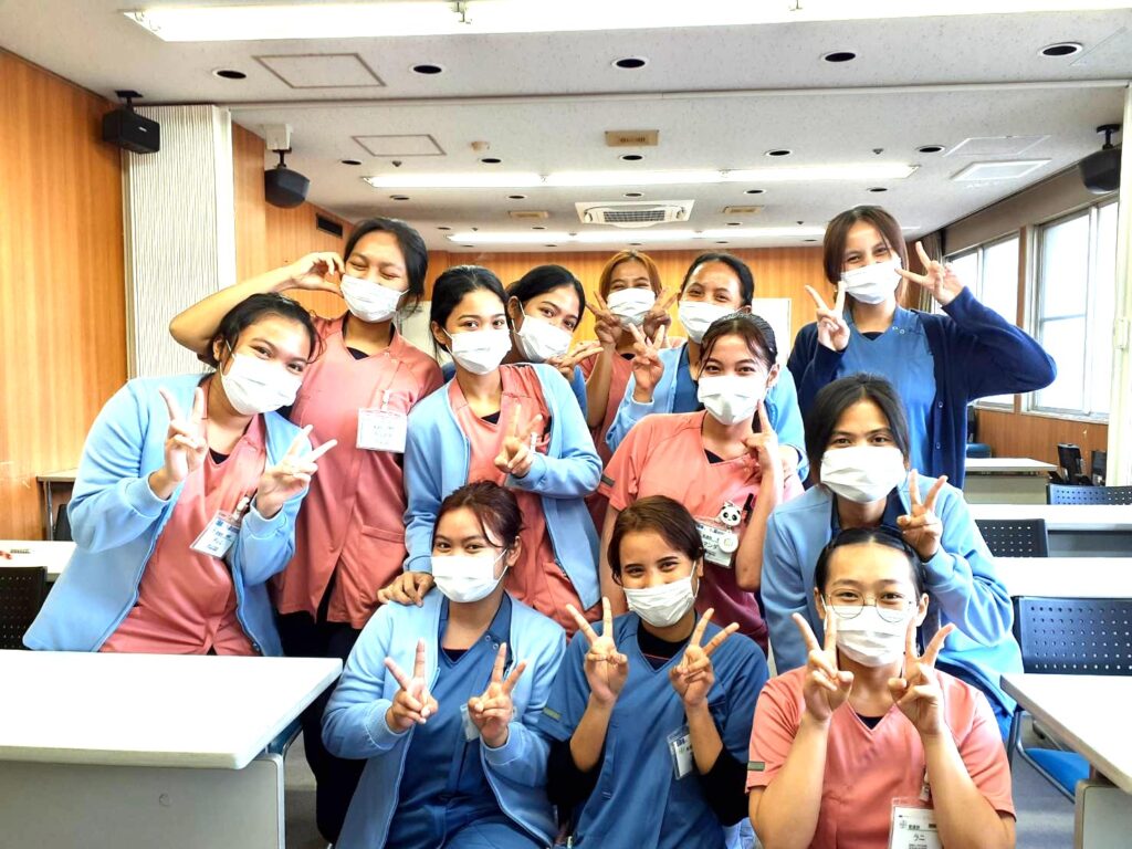 3期生は入職から3ヶ月経過しましたが、少しずつ業務にも慣れてきたとのこと。1、2期生の先輩や日本人スタッフが優しく教えてくれるので助かっている、でもまだ患者様の関西弁の聴き取りが難しいと話していました。